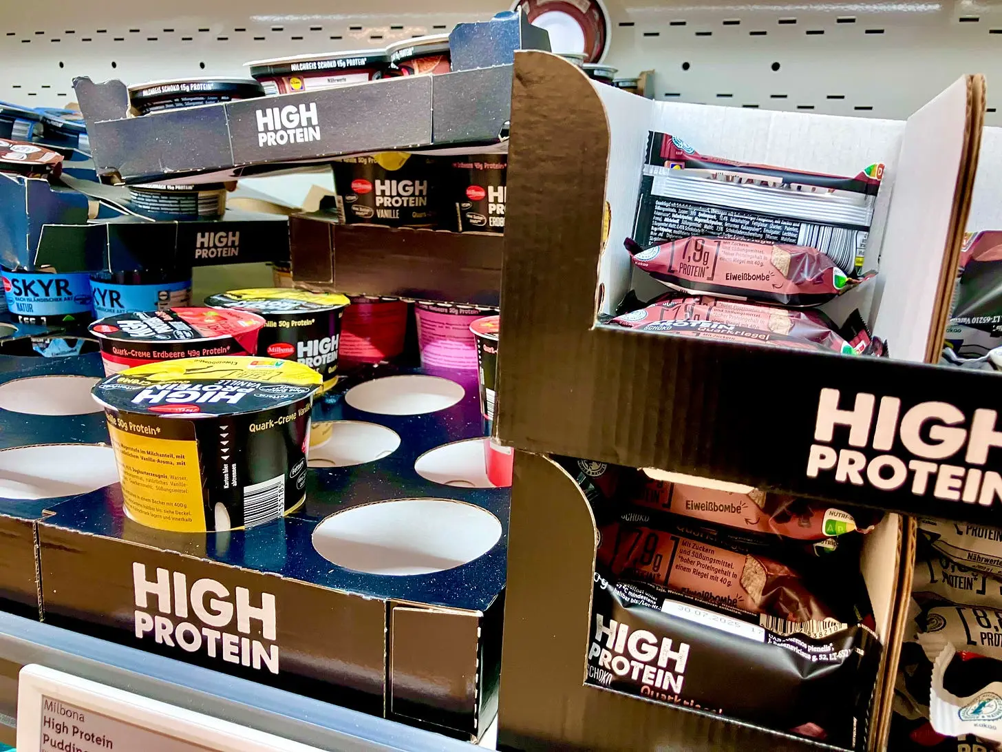 Der US-Gesundheitsminister Robert F. Kennedy jr. propagiert sie, immer mehr Leute schlucken sie, in den USA schon über 40 Prozent der Kinder und Jugendlichen. Der „Proteinwahnsinn“ grassiert, im Supermarkt stapeln sich die “Eiweißbomben” (Foto: DR. WATSON). Und viele haben sich vorgenommen, noch mehr davon zu konsumieren. Kritische Ernährungswissenschaftler wie die New Yorker Professorin Marion Nestle können sich nur noch wundern. Schließlich gebe es definitiv keinen Mangel. Mediziner warnen sogar: Zu viel Protein könne womöglich das Risiko für Diabetes und sogar Krebs erhöhen, langfristig Nieren und Leber überlasten und zu Mundgeruch, Verstopfung und Blähungen führen.